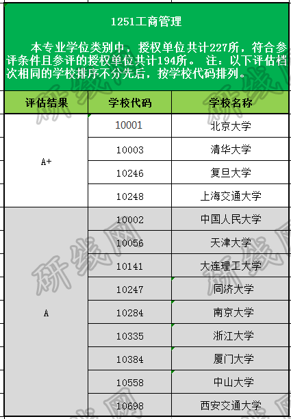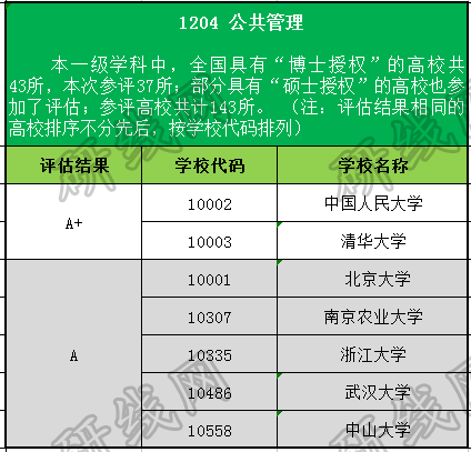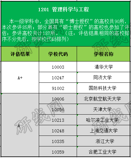 教育部學位與研究生教育發展中心于2017年12月28日公布全國第四輪學科評估結果,其中管理學類學科高校評估結果為A及A以上等級的學校名稱及代碼如下: