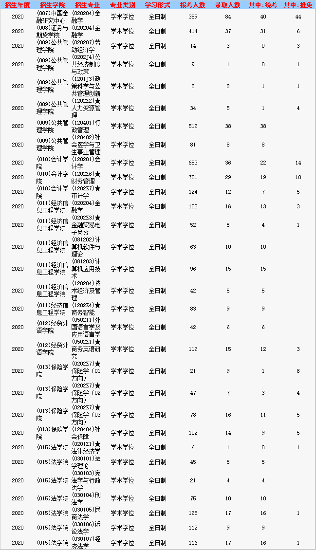 原文標題:西南財經(jīng)大學(xué)歷年報考、錄取數(shù)據(jù)查詢頁面 (碩士)(2000-2020)