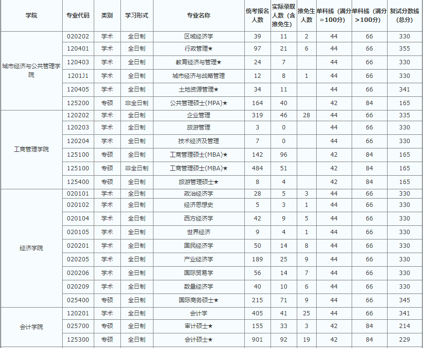 首都經(jīng)濟(jì)貿(mào)易大學(xué)2018年碩士研究生實(shí)際錄取人數(shù)與復(fù)試分?jǐn)?shù)對(duì)照表