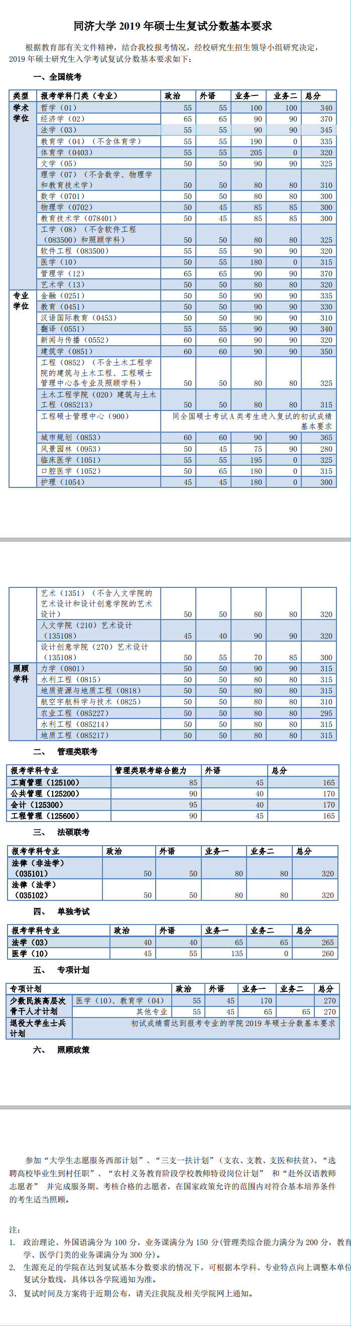 以上就是小編為考生匯總的近三年的同濟大學自主劃線院校分數線,希望對報考同濟大學的考生有所幫助。同時我們會對2020考研分數線進行預測。更多預測內容就在“復試分數線”欄目。祝考生取得好成績。