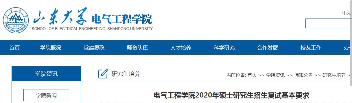 在“山東大學(xué)2020年碩士研究生入學(xué)考試考生進(jìn)入復(fù)試的初試成績基本要求”的基礎(chǔ)上,根據(jù)學(xué)院現(xiàn)有錄取計(jì)劃,經(jīng)學(xué)院黨政聯(lián)席會(huì)討論決定, 2020年報(bào)考電氣工程學(xué)院研究生的復(fù)試基本要求如下: