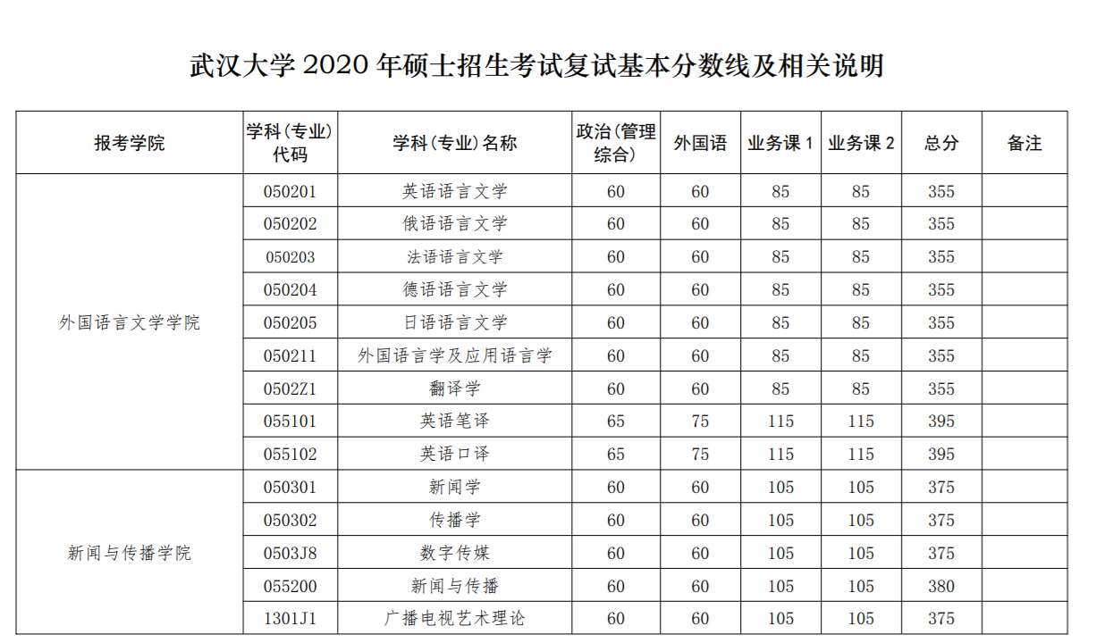 以上就是有關“2020考研分數線:武漢大學2020年碩士研究生復試基本分數線公布!”的全部內容了,進入復試的同學一定要好好準備,在國家線徘徊的同學抓緊準備調劑了!