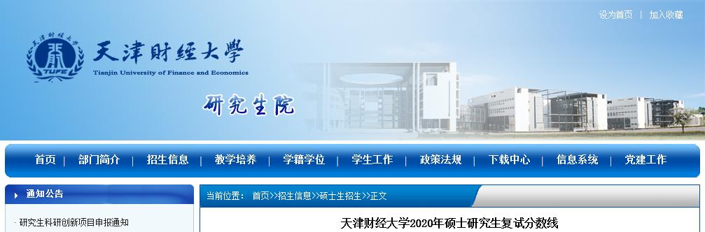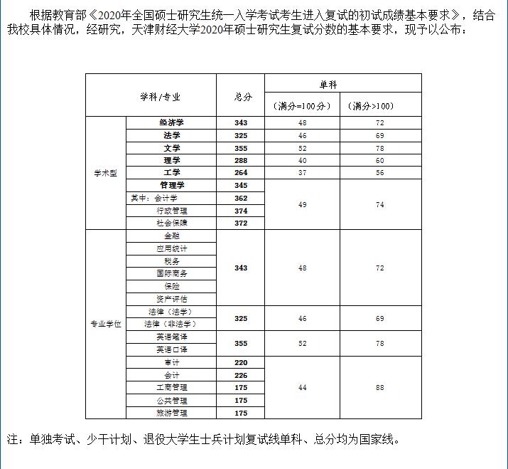 2020考研分數線:天津財經大學2020年碩士研究生復試分數線