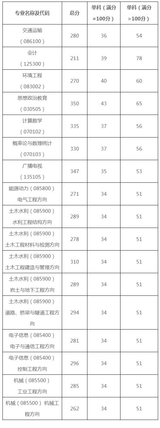 (2)B類國家線總分要求低于300分的學(xué)科門類和專業(yè)學(xué)位(不含管理管理類聯(lián)考):總分230分,單科(滿分=100分)30分,單科(滿分=150分)40分,單科(滿分=300分)100分。