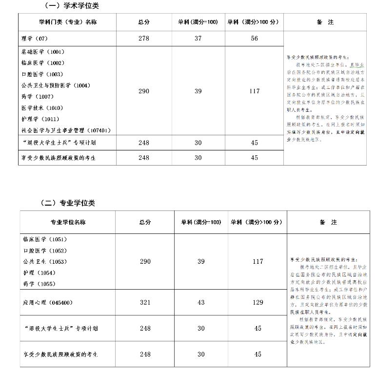 一、2020年碩士研究生招生考試考生進入復試的初試成績要求