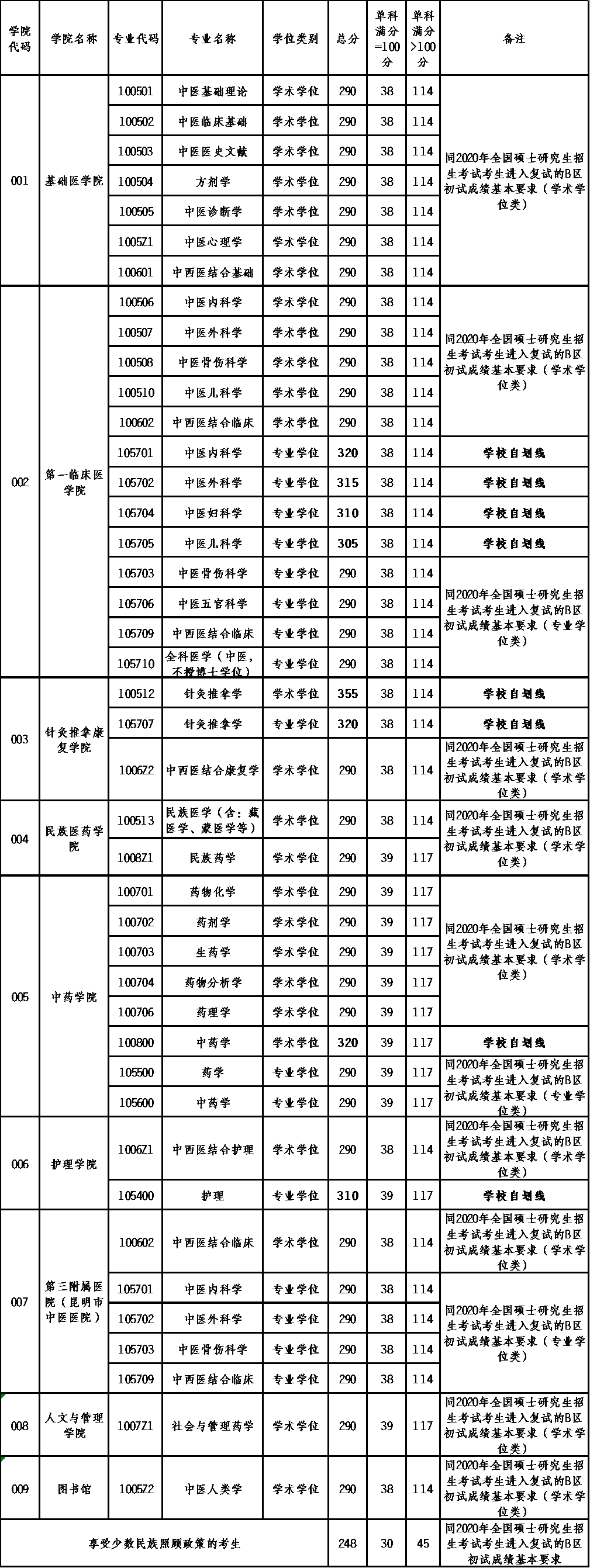 以上就是有關(guān)“2020考研分?jǐn)?shù)線:云南中醫(yī)藥大學(xué)2020年全國碩士研究生招生考試考生進(jìn)入復(fù)試初試成績基本要求及復(fù)試相關(guān)工作安排”的全部內(nèi)容了,進(jìn)入復(fù)試的同學(xué)一定要好好準(zhǔn)備,在國家線徘徊的同學(xué)抓緊準(zhǔn)備調(diào)劑了!