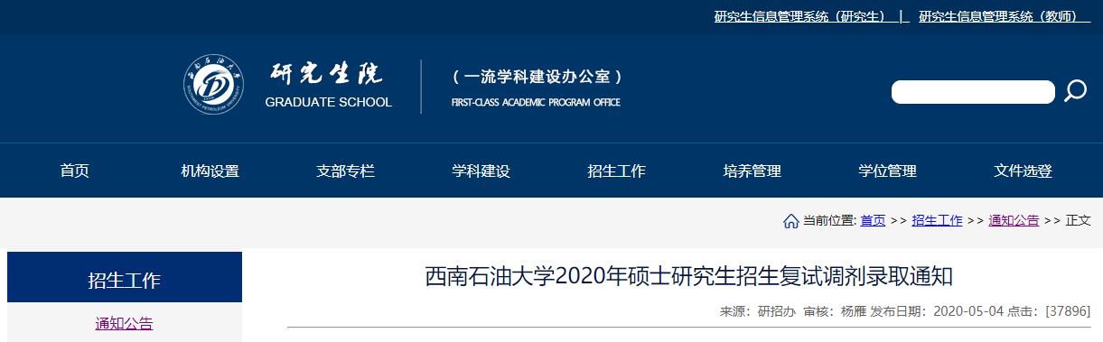 西南石油大學2020年碩士研究生招生復試調劑錄取通知-西南石油大學研究生院