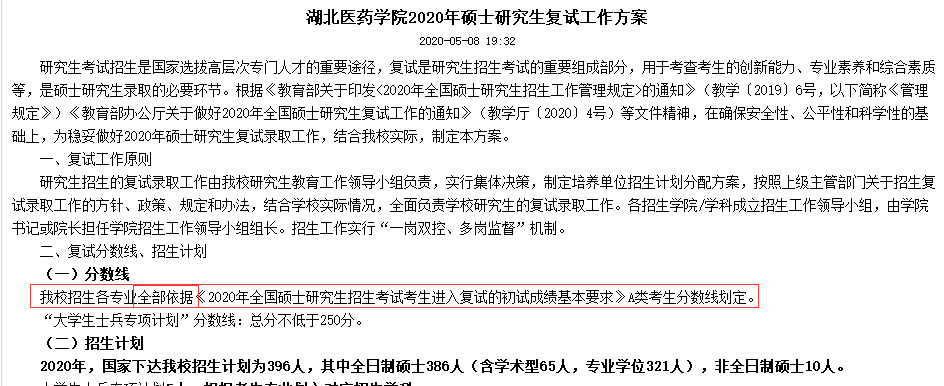 以上就是有關“2020考研分數線:湖北醫藥學院2020年碩士研究生復試分數線”的全部內容了,進入復試的同學一定要好好準備,在國家線徘徊的同學抓緊準備調劑了!