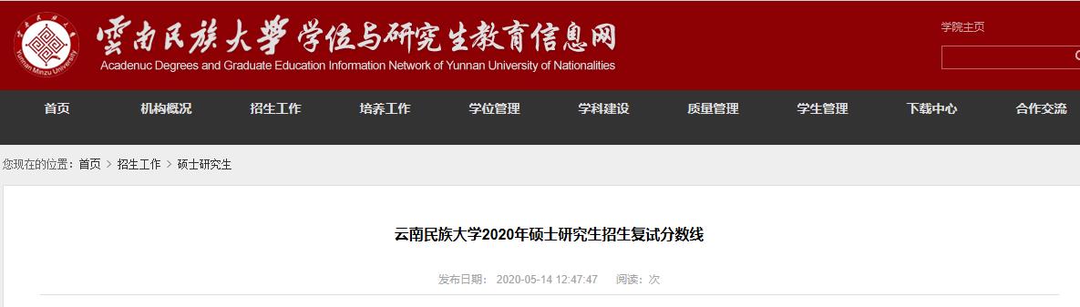 2020考研分數線:云南民族大學2020年碩士研究生招生復試分數線
