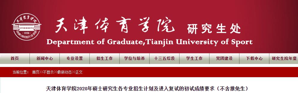 以上就是有關“2020考研分數線:天津體育學院2020年碩士研究生各專業招生計劃及進入復試的初試成績要求(不含推免生)”的全部內容了,進入復試的同學一定要好好準備,在國家線徘徊的同學抓緊準備調劑了!