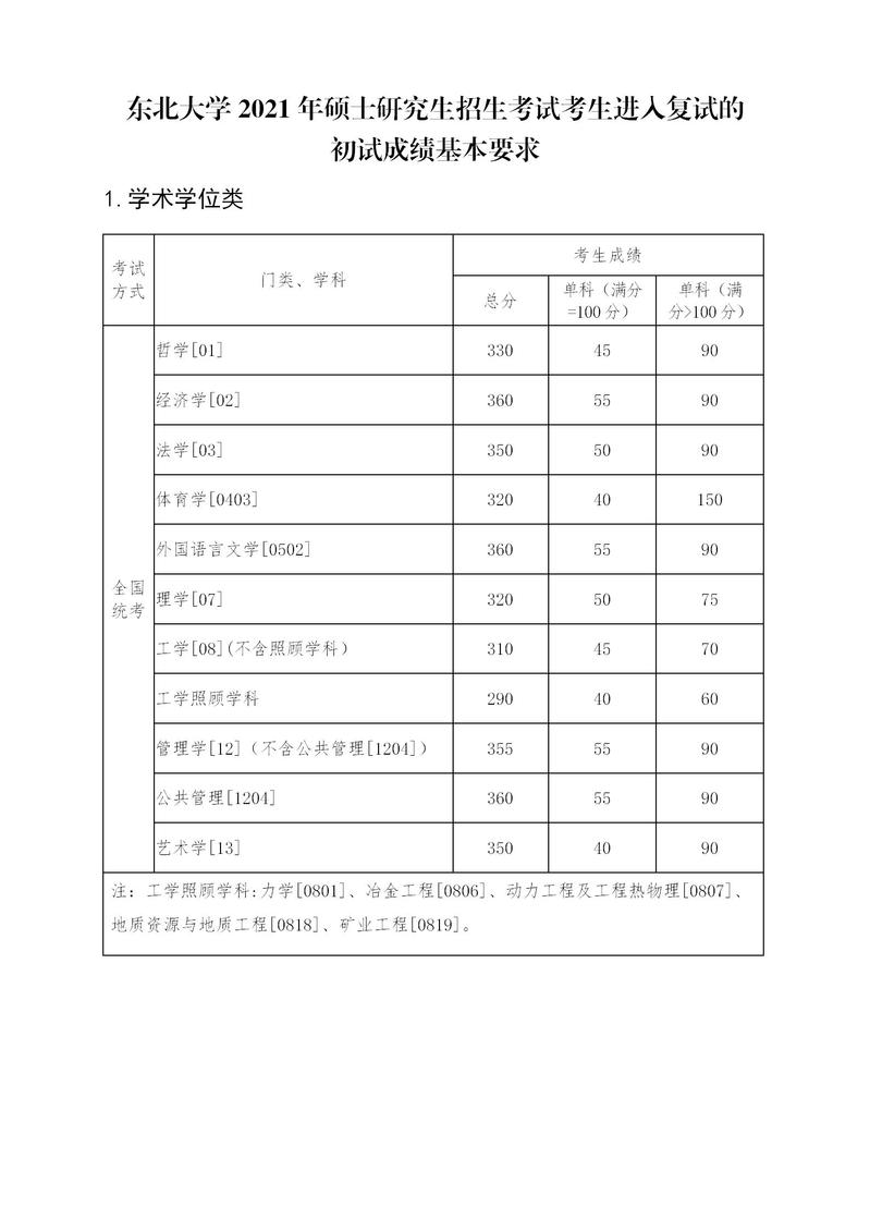 原文標(biāo)題:東北大學(xué)2021年碩士研究生招生考試考生進(jìn)入復(fù)試的初試成績(jī)基本要求