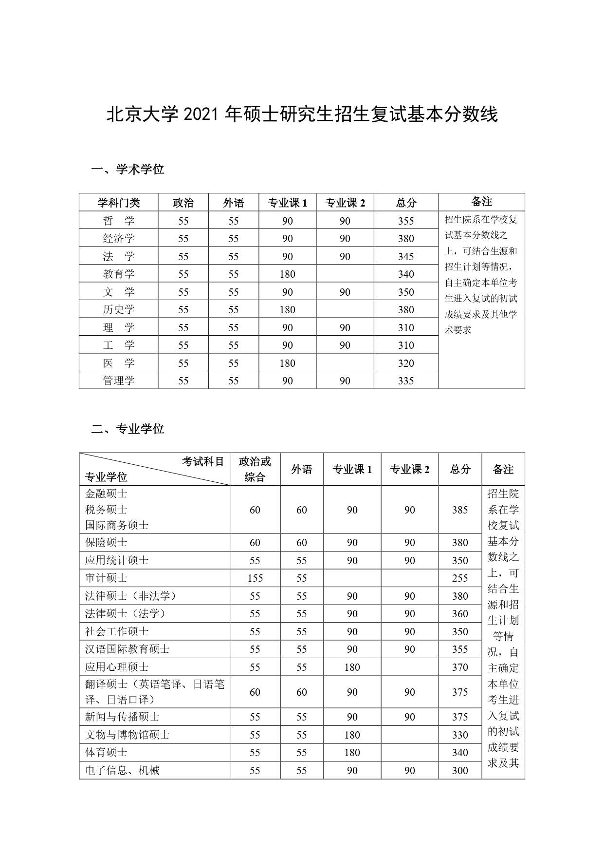 原文標(biāo)題:北京大學(xué)2021年碩士研究生招生復(fù)試基本分?jǐn)?shù)線