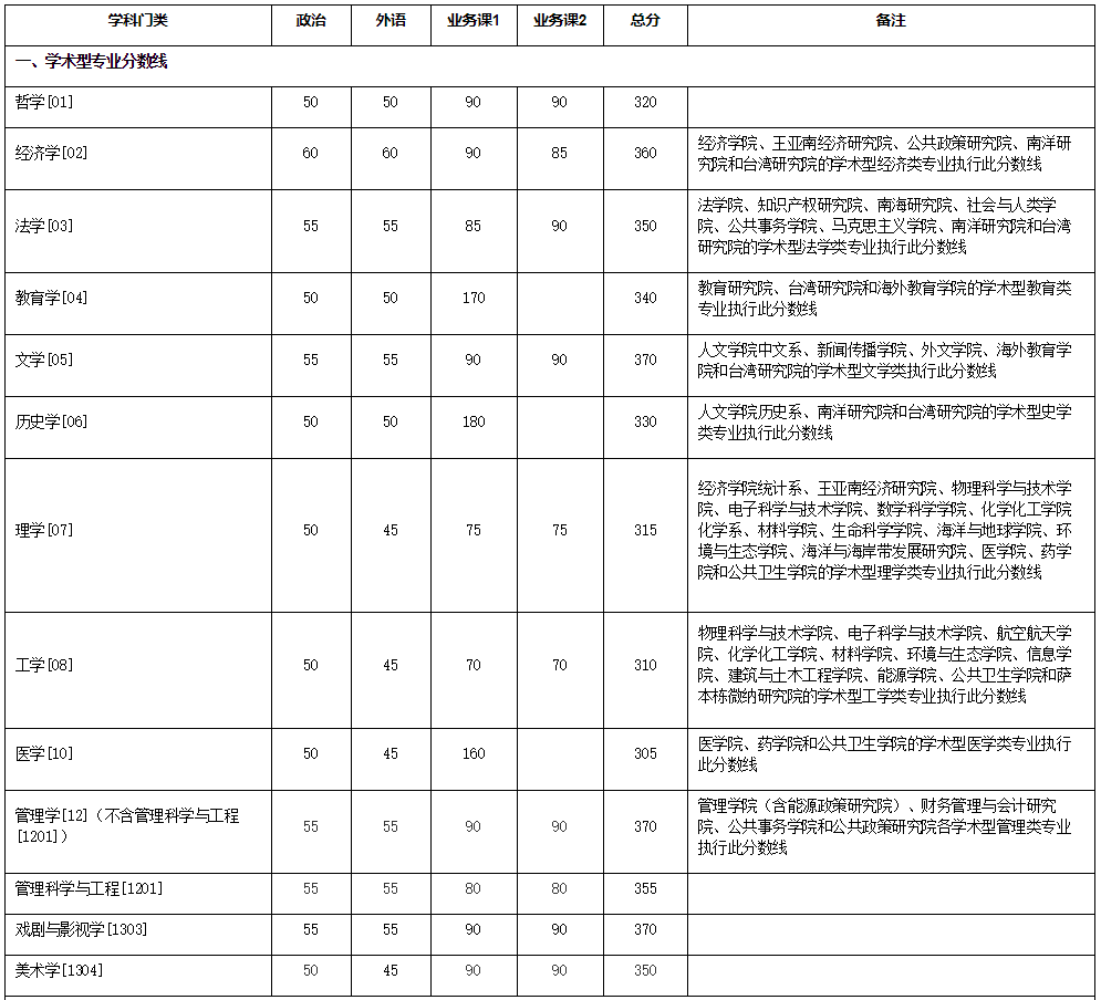 1.以上分數線為考生進入我校復試的初試成績基本要求,各學院(研究院)可在不低于學校復試基本要求的基礎上,根據生源和計劃情況確定本學院(研究院)各專業考生進入復試的初試成績要求。