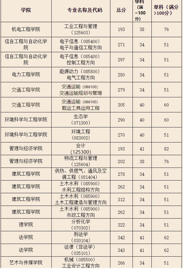 (2)B區國家線總分要求低于300分的學科門類和專業學位(不含管理管理類聯考):總分220分,單科(滿分=100分)30分,單科(滿分=150分)50分,單科(滿分=300分)100分。