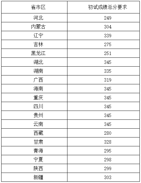 初試成績須達到2021年全國碩士研究生招生考試A類地區(qū)考生進入復試的初試成績基本要求(國家線)