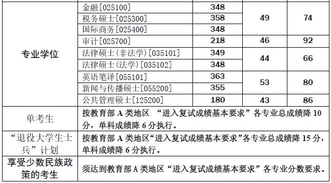 根據教育部2021年劃定的研究生“進入復試成績基本要求”,以及我校各學科專業的生源上線情況,經學校研究生招生工作領導小組研究確定我校進入復試的初試成績基本要求(以下簡稱學校復試線)如下: