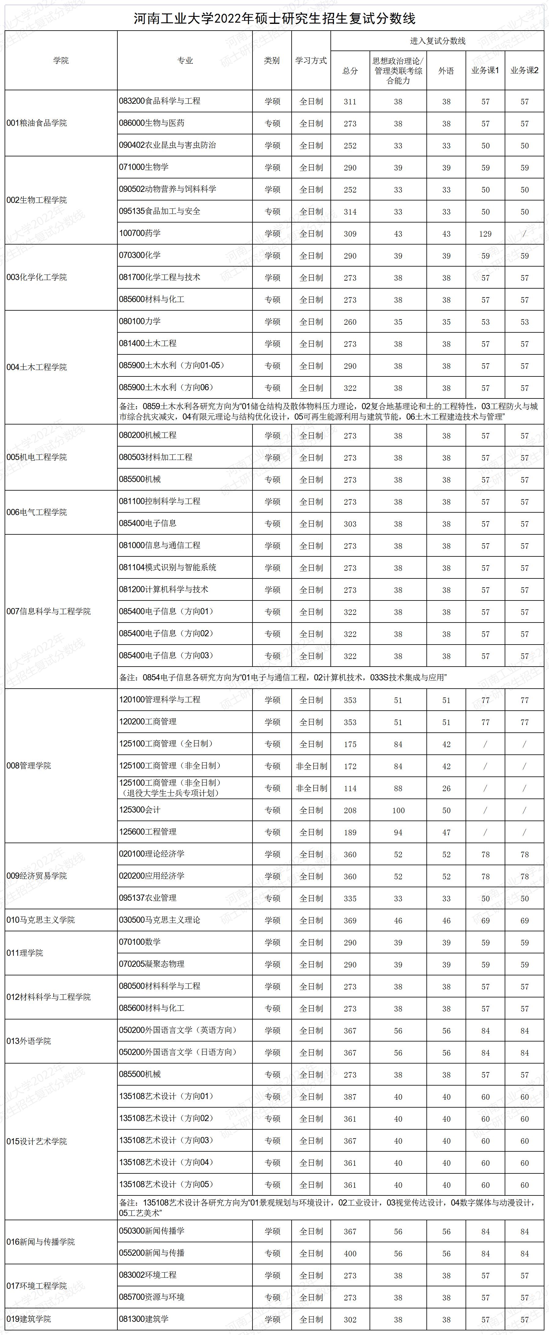 以上就是小編為大家整理“2022考研分數(shù)線:河南工業(yè)大學2022年全國碩士研究生招生考試考生進入復試的初試成績基本要求”的全部內容,想了解更多相關內容,請持續(xù)關注本網站。