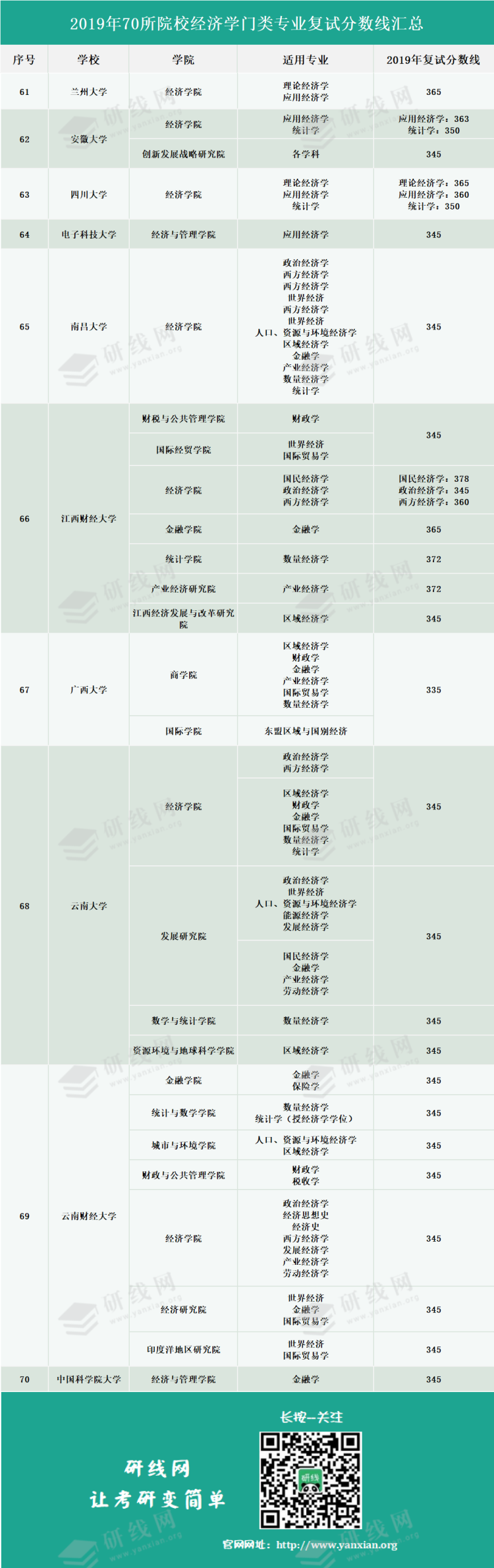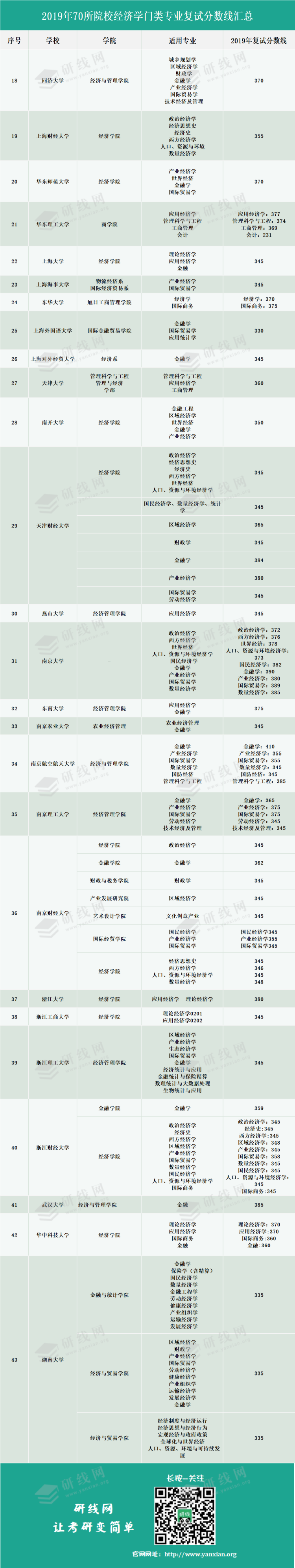 研線數據行提醒您:本次匯總涵蓋北京、天津、河北、上海、廣州、湖南、湖北等21個省市自治區直轄市的70所院校經濟學門類相關專業復試分數線!