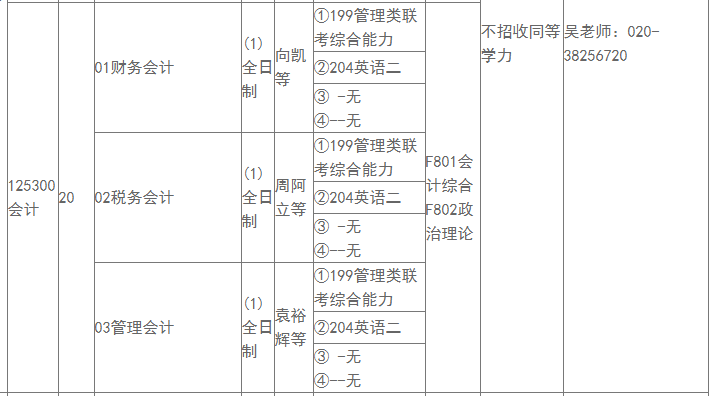 廣東技術師范學院2020MPAcc會計碩士全日制復試科目:01財務會計02稅務會計03管理會計