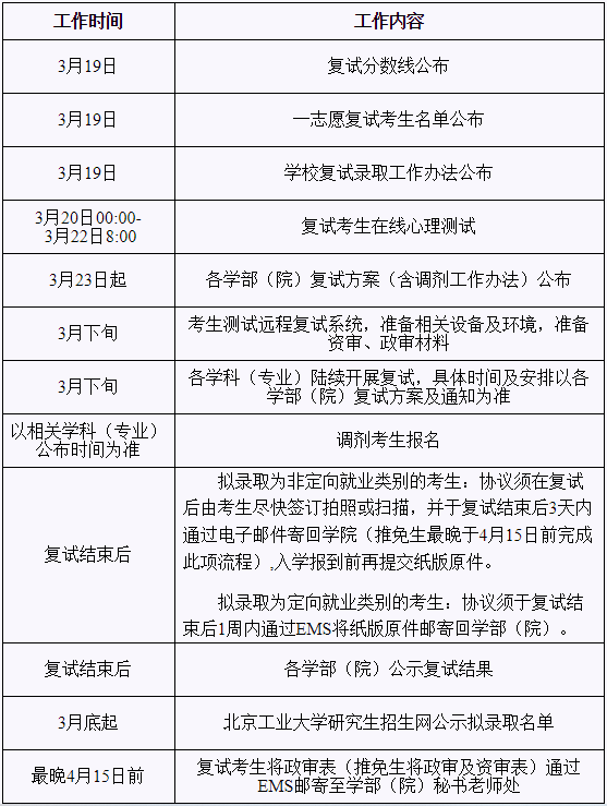 以上就是“北京工業大學2021年碩士研究生招生復試、錄取工作安排”的全部內容,其他院校的2021復試錄取安排可戳→【2021考研復試:各院校復試時間_復式方式_復試考試內容匯總!】