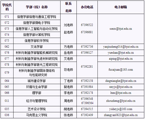 北京工業大學研究生招生各學部(院)聯系方式: