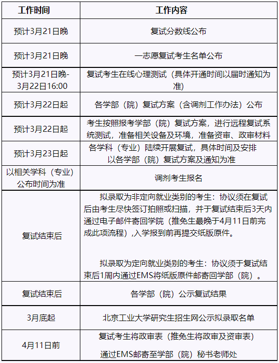 以上就是“2022考研復試安排_復試時間_復試方式:北京工業大學2022年碩士研究生招生復試、錄取工作安排”的全部內容。更多內容請持續關注!