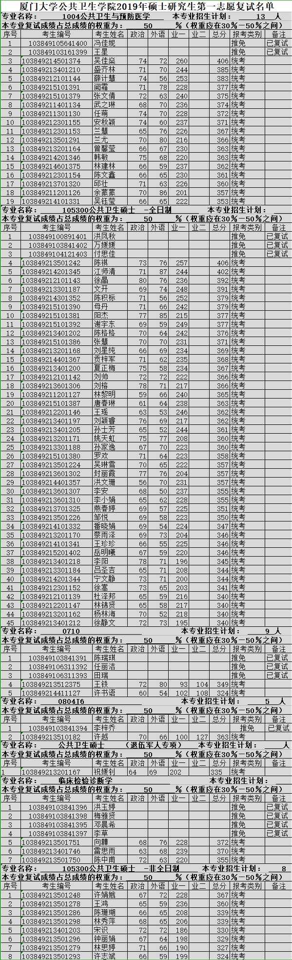 廈門大學(xué)公共衛(wèi)生學(xué)院2019年碩士研究生第一志愿復(fù)試通知