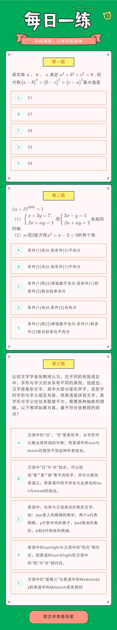 點擊進入:研線課堂萬題庫,每日習題不重復。全面題型任你刷,真題解析隨便看。