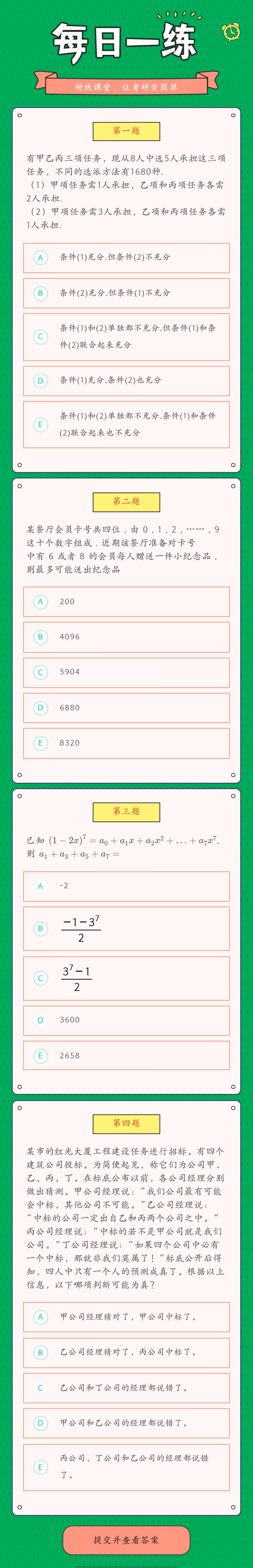 以上就是今日每日一練的全部?jī)?nèi)容,跟著每日一練,考研輕松復(fù)習(xí)!更多考試練習(xí),點(diǎn)擊考研每日一練!