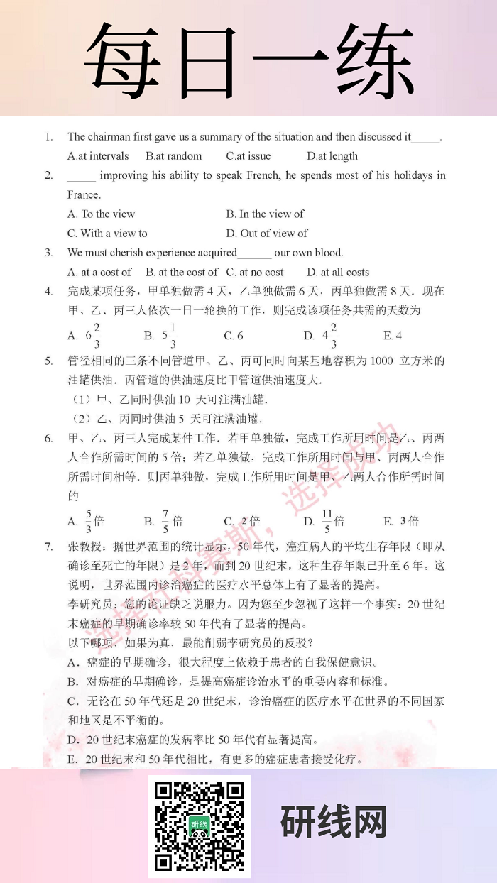 以上就是今日每日一練的全部內(nèi)容,跟著每日一練,考研輕松復(fù)習(xí)!更多考試練習(xí),點擊管理類聯(lián)考每日一練!