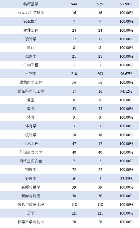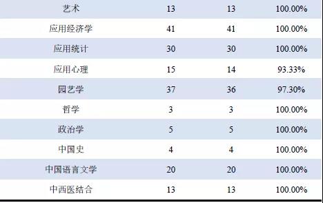從研究生各學科(專業)來看,學校75個研究生學科(專業)中,72個學科(專業)的就業率達到95.00%以上,其中57個研究生學科(專業)的就業率達到了100%。