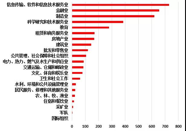 信息傳輸、軟件和信息技術服務業、金融業、制造業、科學研究和技術服務業及教育等行業企業發布招聘信息數量較多,合計占到所有企業的70.20%,較去年略有上升,基本符合我校專業設置及學生的特質。
