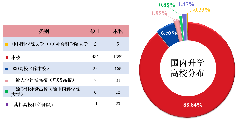根據世界大學學術排名(Academic Ranking of World Universities,簡稱ARWU)2019 年發布最新排名,我校出國(境)深造畢業生生中有40.23%赴世界排名前30位國(境)外高校留學深造,人數為416人。