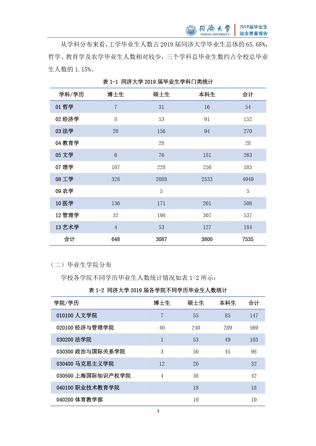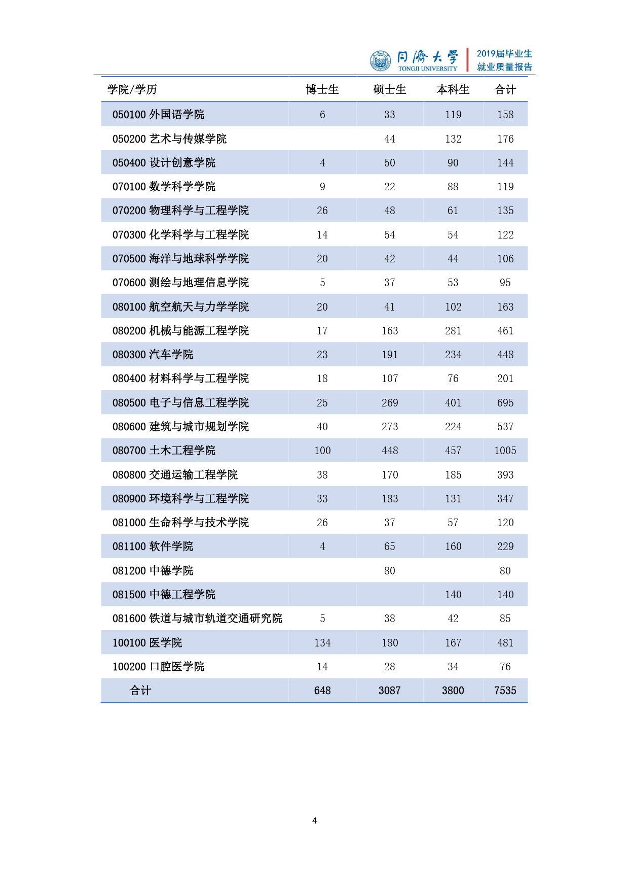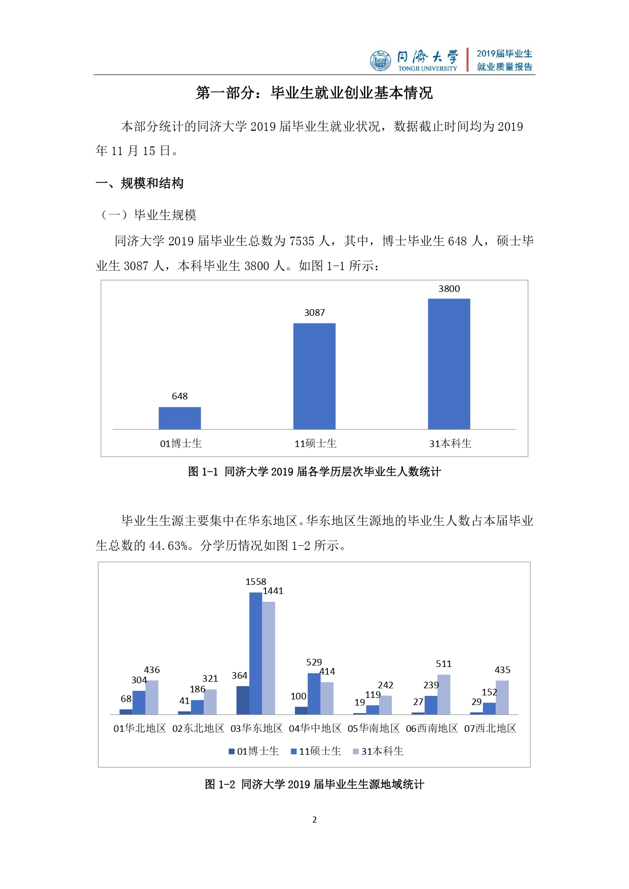 根據(jù)教育部、上海市教委統(tǒng)一工作部署,現(xiàn)公布《同濟大學2019屆畢業(yè)生就業(yè)質量報告》,報告中2019屆畢業(yè)生就業(yè)數(shù)據(jù)統(tǒng)計截至2019年11月15日。