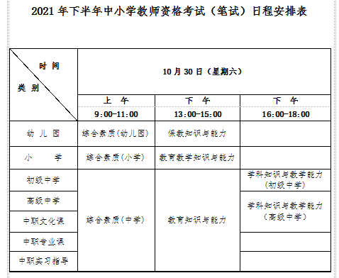 (三)2021年下半年面試報名時間:12月9-12日,面試日期:2022年1月8-9日,面試具體公告信息請于筆試成績公布后登錄中小學(xué)教師資格考試網(wǎng)(http://ntce.neea.edu.cn)。