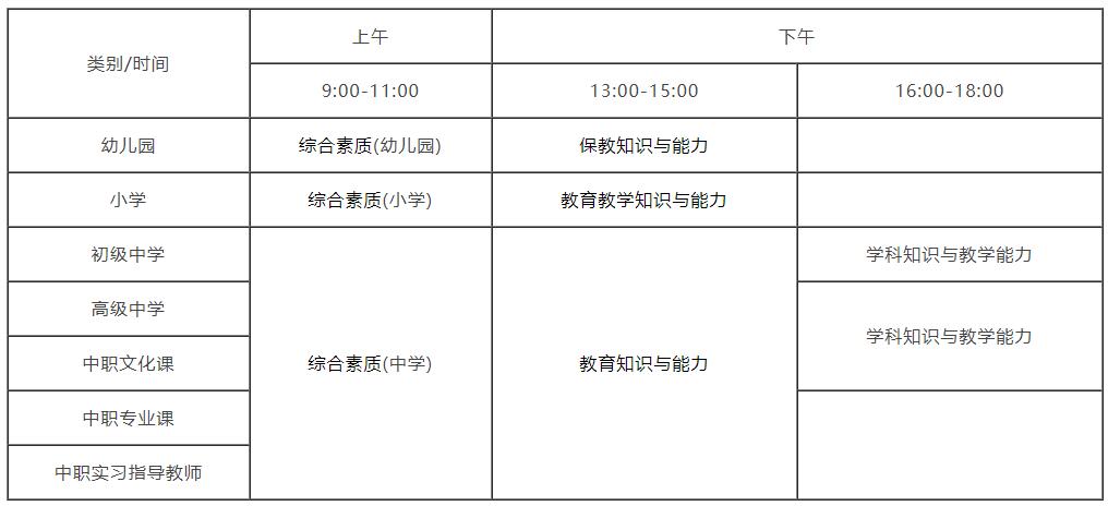 申請中職專業課及中職實習指導教師資格的人員參加中學教師的“綜合素質”和“教育知識與能力”兩科筆試,“學科知識與教學能力”科目納入面試環節考查。