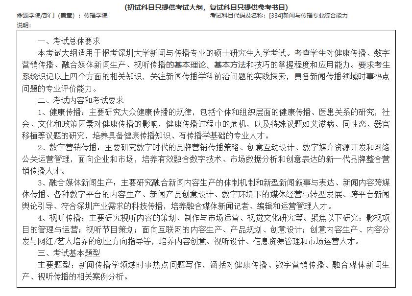 以上就是研線網(wǎng)小編整理了“2021考研大綱:深圳大學334新聞與傳播專業(yè)綜合能力2021年碩士研究生招生入學考試大綱”的內(nèi)容,更多考研大綱,請多多關注!