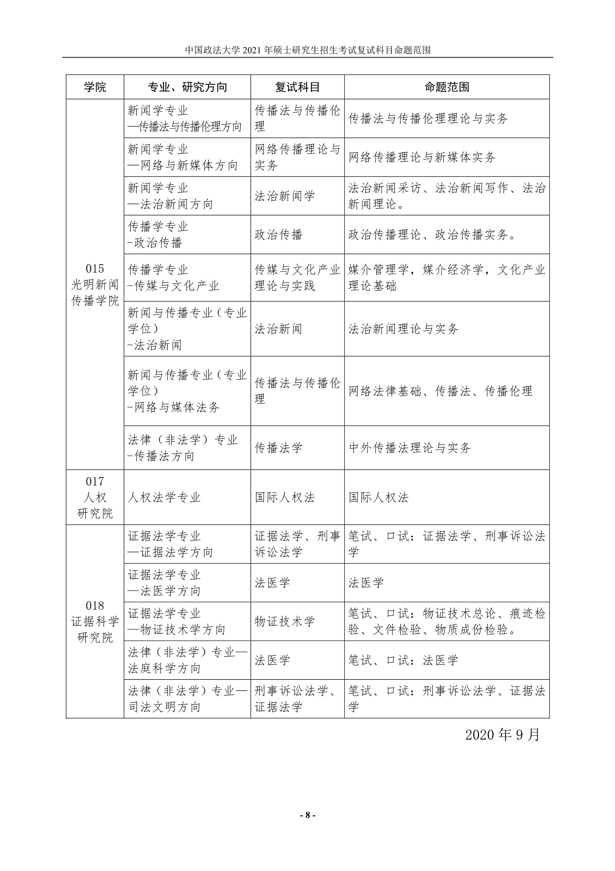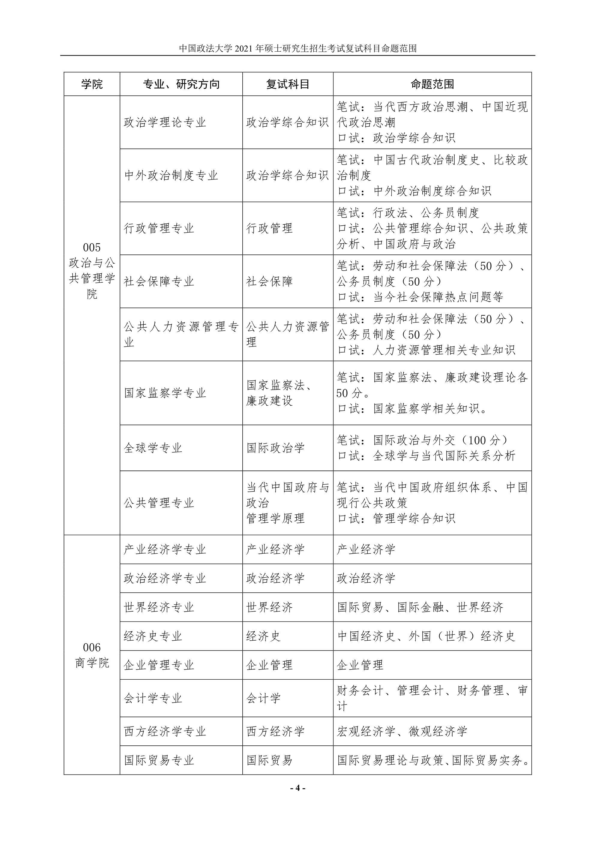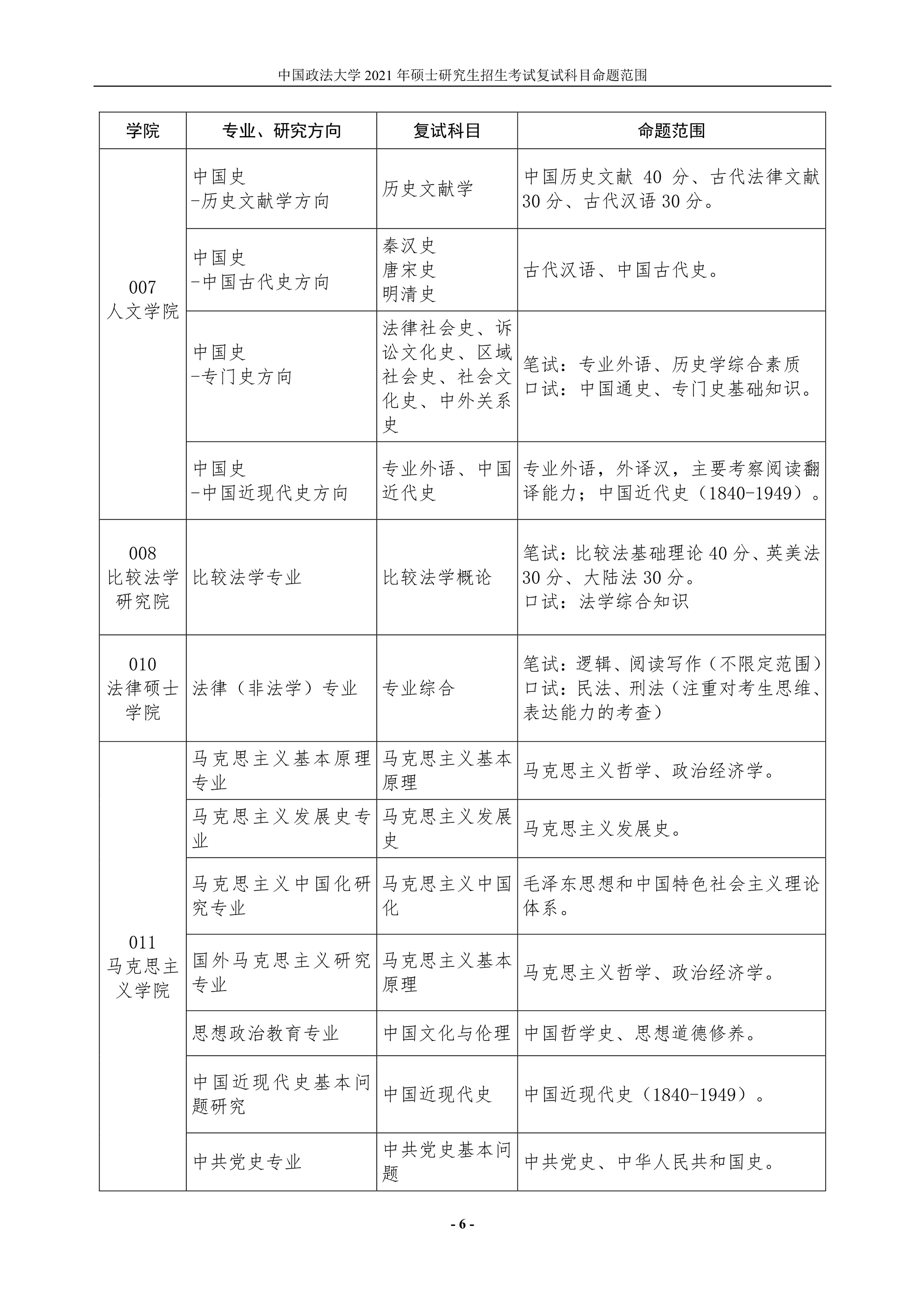 點擊查看:中國政法大學2021年碩士研究生招生考試復試科目命題范圍.pdf