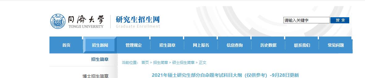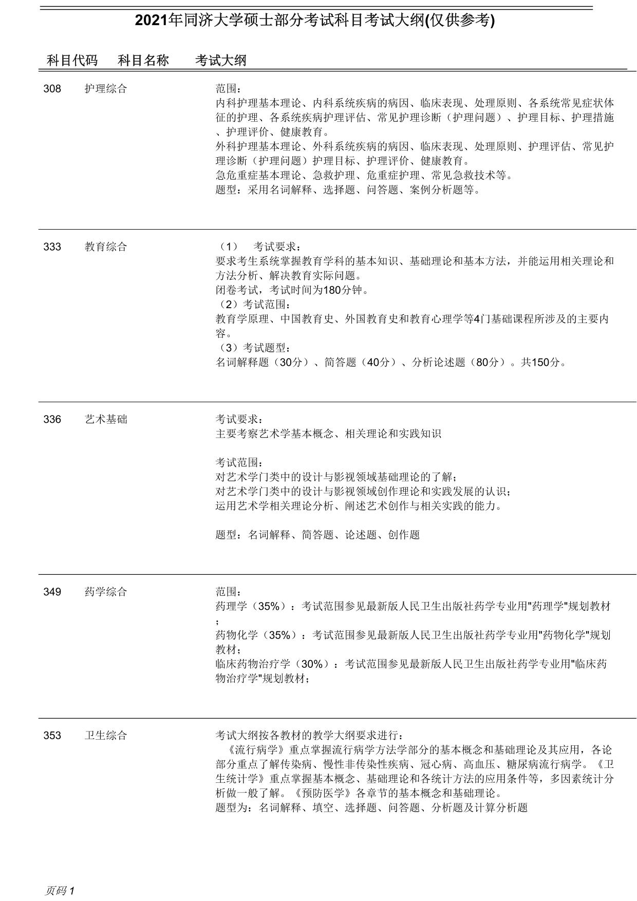 以上就是“2021考研大綱:同濟大學2021年碩士研究生部分自命題考試科目大綱”的全部內容,更多考研大綱信息,請多多關注!
