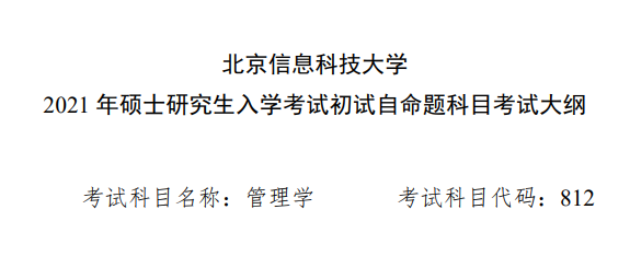 上就是“2021考研大綱:北京信息科技大學(xué)管理學(xué)2021年碩士研究生入學(xué)考試初試自命題科目考試大綱參考書目”的全部內(nèi)容,更多考研大綱信息,請(qǐng)多多關(guān)注!