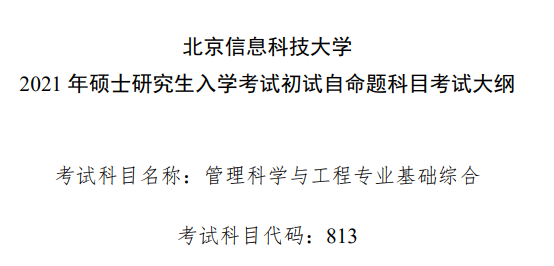 考試大綱不僅能給你一個復習的方向,還能幫助你梳理整個知識脈絡,方便記憶。今天,小編為大家整理了“2021考研大綱:北京信息科技大學管理科學與工程專業基礎綜合2021年碩士研究生入學考試初試自命題科目考試大綱參考書目”的相關內容,希望對大家有所幫助!