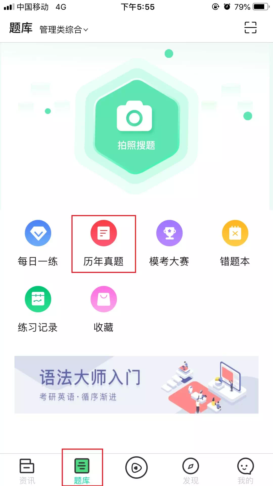 練習方式:打開研線課堂APP,點擊題庫→歷年真題