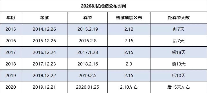 首先,我們先回顧一下此前5年初試成績公布時間,并可以從中觀察到一些規(guī)律: