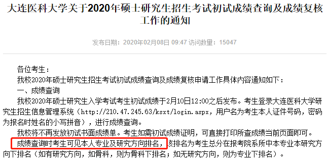公布初試排名的學校
