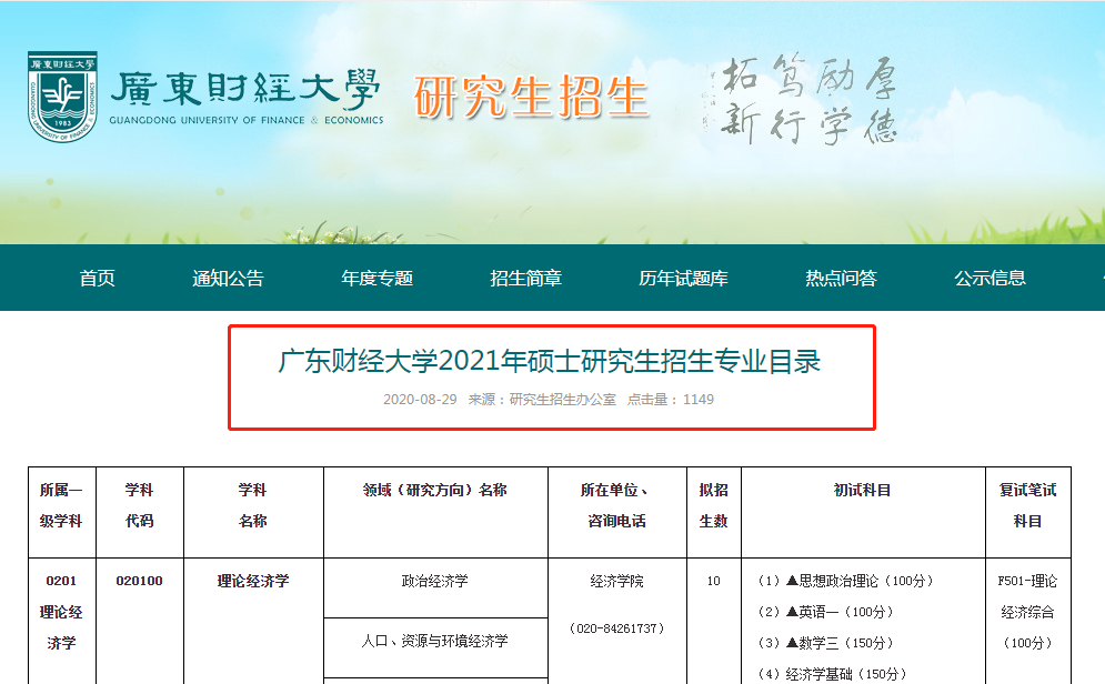 廣東財經(jīng)大學(xué)公布2021年碩士研究生招生專業(yè)目錄。