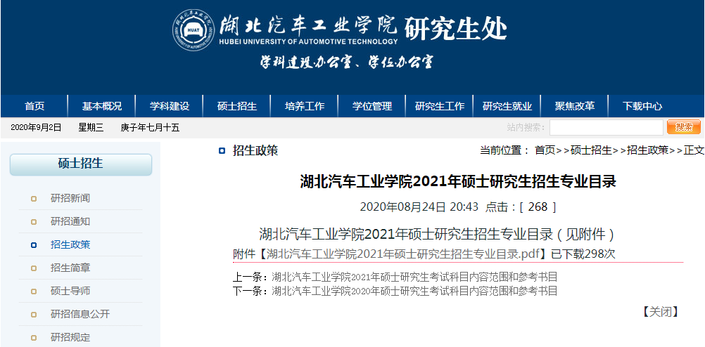 湖北汽車工業(yè)學(xué)院公布2021年碩士研究生專業(yè)目錄。