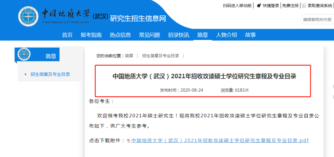 中國地質(zhì)大學(xué)(武漢)公布2021年研究生章程及專業(yè)目錄。