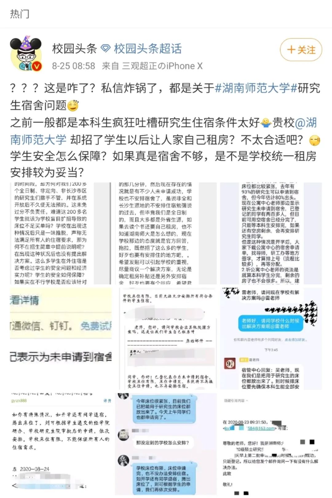 湖南師范大學(xué)研究生宿舍床位緊張,部分研究生未申請到床位,就此事向微博博主投稿,表示校方用“官方的回答了他的廢話”,希望能夠得到實際的解決。