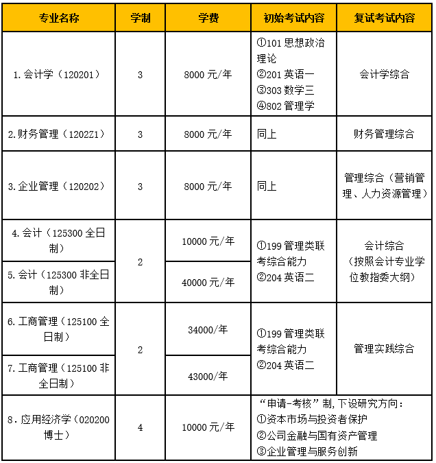 全日制會計專碩學(xué)制2年,學(xué)費(fèi)1萬元/年;非全日制學(xué)制2年,學(xué)費(fèi)4萬元/年。