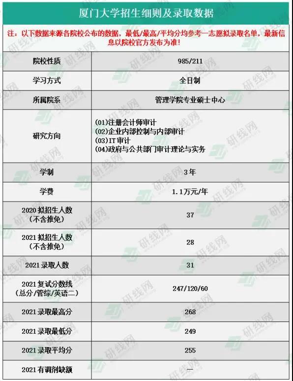 審計專碩2021年國家線為179分。國家線是進入復試的基本成績要求,過了國家線可不要天真以為就上岸無憂了嗷,還得看院校復試分數線吶?!?2考研審計擇校藍皮書》為大家整理了49所審計專業招生院校2018-2021年的復試分數線匯總,同學們可觀察總結該院校近4年的復試分數線的漲幅情況。